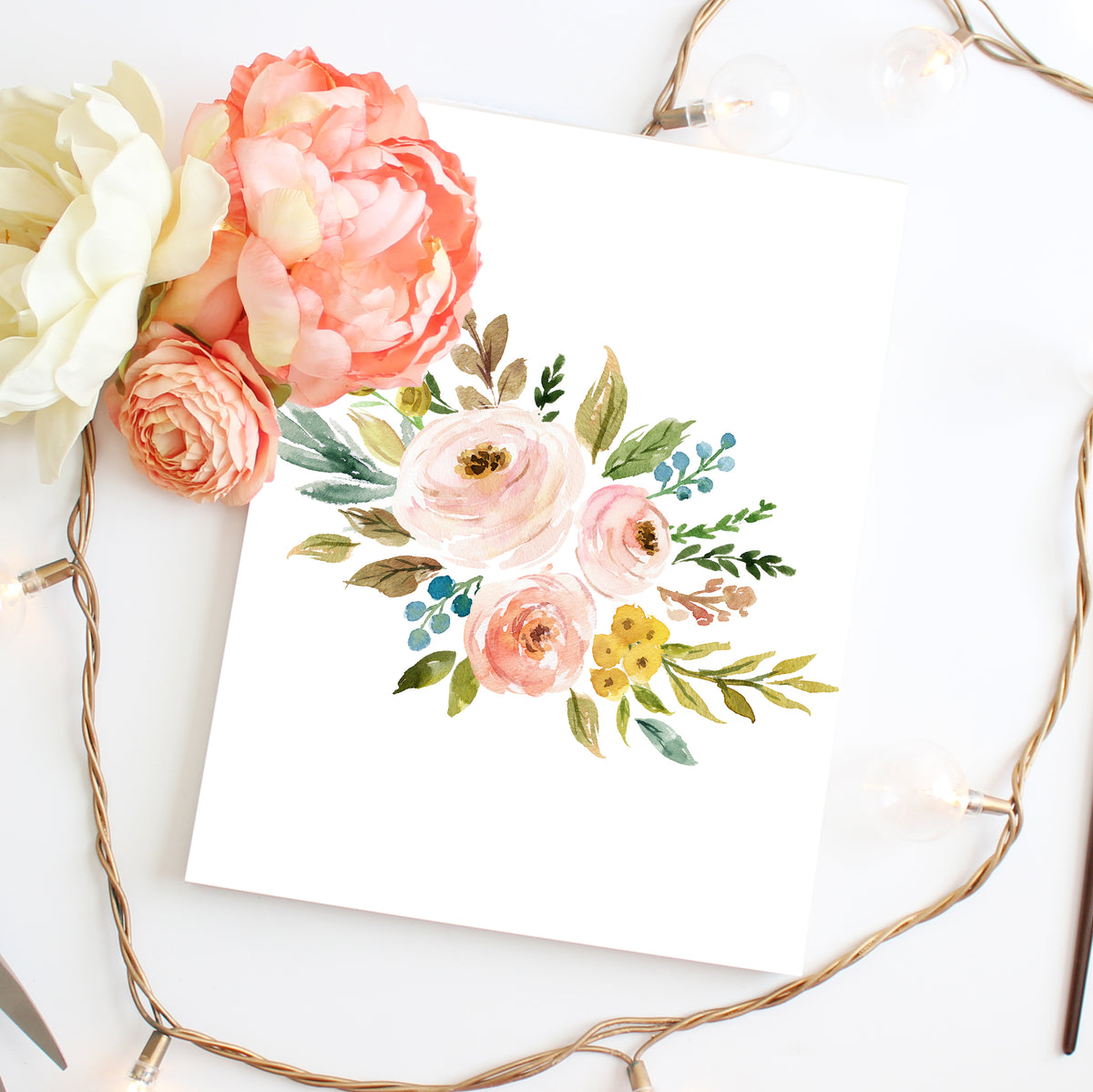 Beautiful colorful watercolor florals in pinks, blushes, greens, blues and goldenrod, from the Meadowland Collection.
