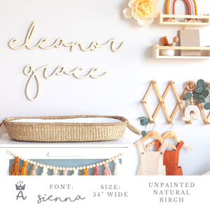 Add a personal and unique touch to your nursery or child's room with a first and last name sign featuring our stunning Sienna script font! Custom-made from high quality 1/2" thick baltic birch plywood that is machine cut with precision and wide-belt sanded to deliver superior craftsmanship.